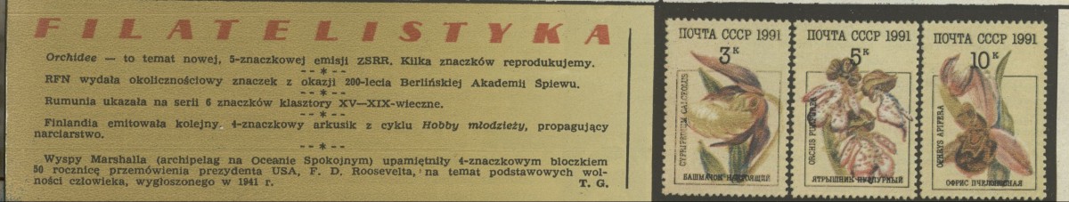 Archiwum / Filatelistyka nr 2416 (24/1991) 24/259 Podziel się Tytuł Filatelistyka Autor Tadeusz Grabikowski Rubryka Filatelistyka Artykuł z numeru 2416 (2417/1991) Data wydania 13 października 1991 Tagi znaczki pocztowe orchidea