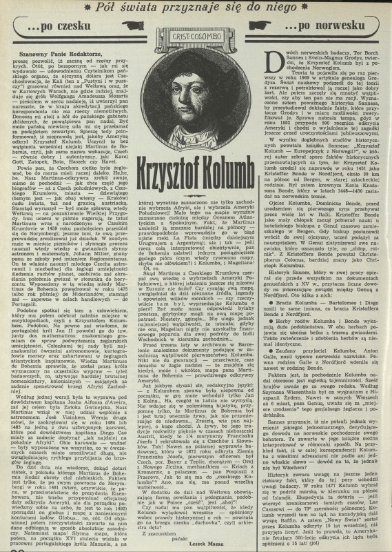Archiwum / Artykuł nr 2416 (24/1991) 20/25 Podziel się Tytuł Pół świata przyznaje się do niego: Krzysztof Kolumb Autor Leszek Mazan Kategoria Artykuł Artykuł z numeru 2416 (2417/1991) Data wydania 13 października 1991