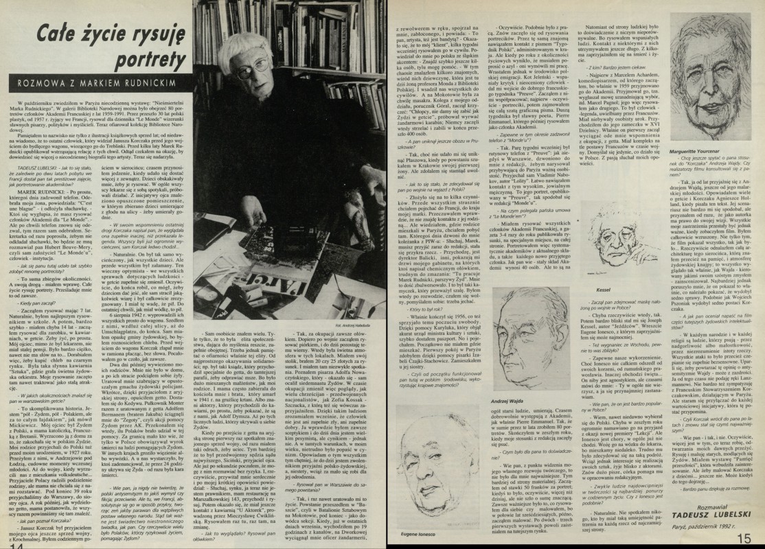 Archiwum / Rozmowy z artystami nr 2483 (04/1993) 20558/123969 Podziel się Tytuł Całe życie rysuję portrety Autor Tadeusz Lubelski Rubryka Rozmowy z artystami Artykuł z numeru 2483 (4/1993) Data wydania 24 stycznia 1993 Tagi Marek Rudnicki Nieśmiertelni Marka Rudnickiego BN portret