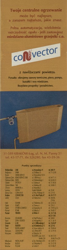 Archiwum / Reklamy nr 2483 (04/1993) 12/163 Podziel się Tytuł Convector Rubryka Reklamy Artykuł z numeru 2483 (4/1993) Data wydania 24 stycznia 1993 Tagi grzejniki co