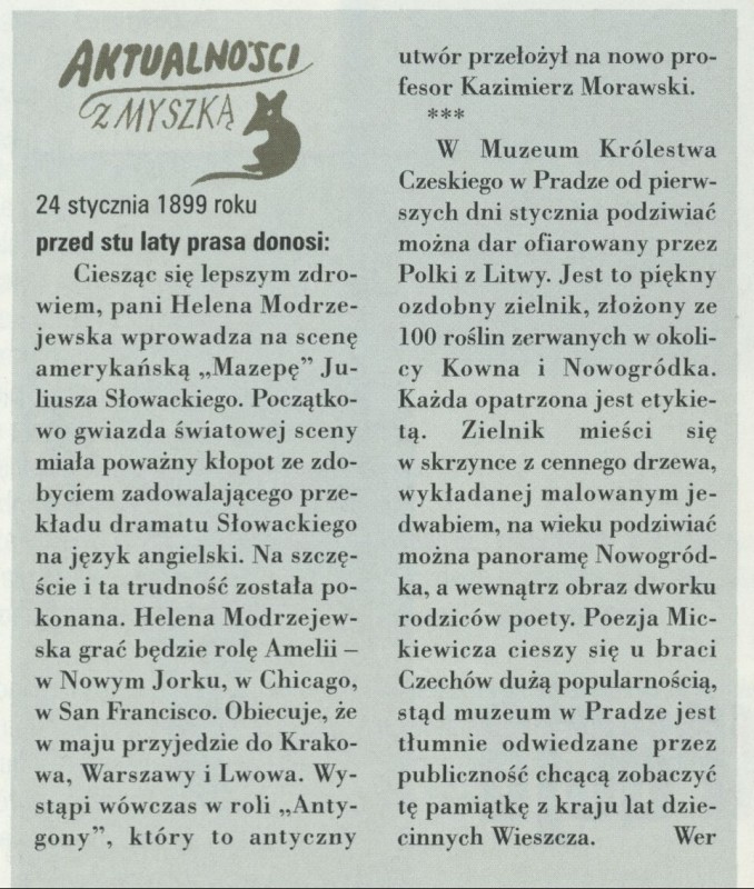 Archiwum / Aktualności z myszką nr 2796 (27/1999) 6/7 Podziel się Tytuł Aktualności z myszką Autor wer Rubryka Aktualności z myszką Artykuł z numeru 2796 (2797/1999) Data wydania 31 stycznia 1999 Tagi Modrzejewska Praga