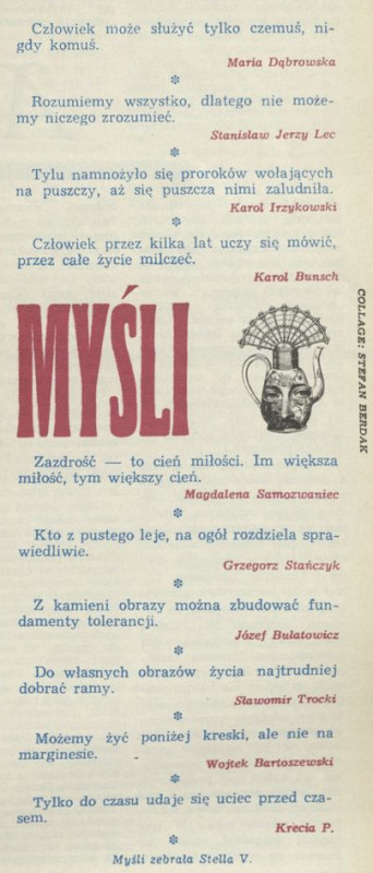 Archiwum / Myśli nr 2504 (25/1993) 19427/123969 Podziel się Tytuł Myśli Autor Stella Varcaby Rubryka Myśli Artykuł z numeru 2504 (25/1993) Data wydania 20 czerwca 1993 Tagi cytaty aforyzmy