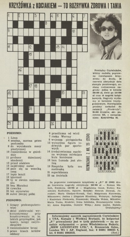 Archiwum / Krzyżówka z kociakiem nr 2505 (26/1993) 26/51 Podziel się Tytuł Krzyżówka z kociakiem Rubryka Krzyżówka z kociakiem Artykuł z numeru 2505 (26/1993) Data wydania 27 czerwca 1993 Tagi krzyżówka z kociakiem