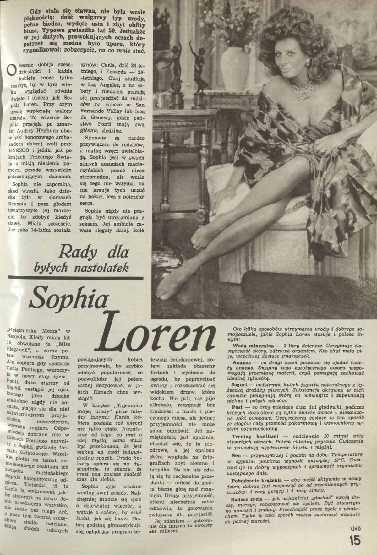 Archiwum / Różności nr 2506 (27/1993) 104628/123969 Podziel się Tytuł Rady dla byłych nastolatek Autor jol Kategoria Różności Artykuł z numeru 2506 (27/1993) Data wydania 4 lipca 1993 Tagi Sophia Loren kobieta ciało
