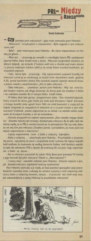 Archiwum nr 2709 (21/1997) 8156/123969 Podziel się Tytuł Między PRL-em a Rzecząpospolitą Autor Dorota Terakowska Artykuł z numeru 2709 (21/1997) Data wydania 25 maja 1997 Tagi mleczarz