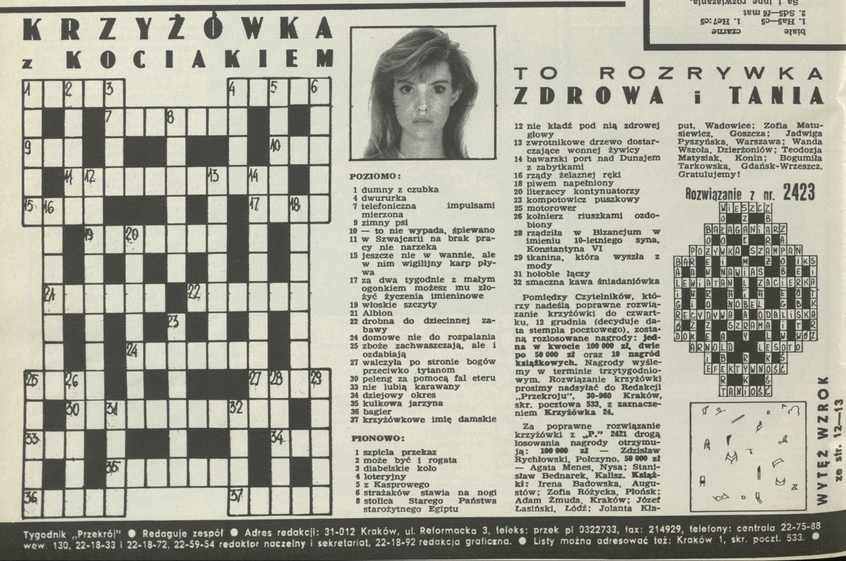 Archiwum / Krzyżówka z kociakiem nr 2424 (24/1991) 47/48 Podziel się Tytuł Krzyżówka z kociakiem Rubryka Krzyżówka z kociakiem Artykuł z numeru 2424 (2425/1991) Data wydania 8 grudnia 1991