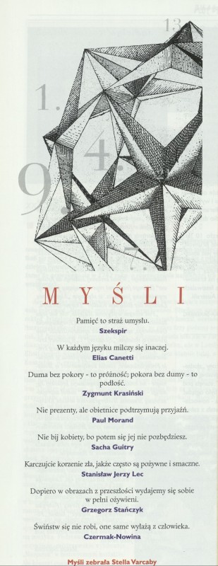 Archiwum / Myśli nr 2718 (30/1997) 116341/123969 Podziel się Tytuł Myśli Autor Stella Varcaby Rubryka Myśli Artykuł z numeru 2718 (30/1997) Data wydania 27 lipca 1997 Tagi myśli nieuczesane