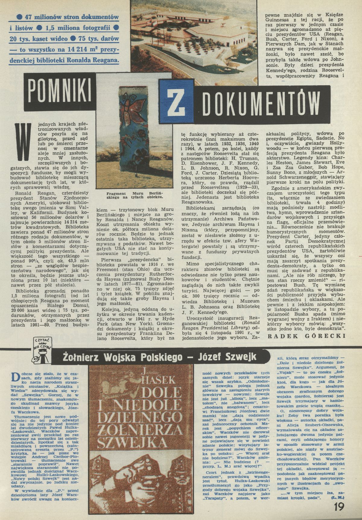Archiwum / Artykuł nr 2434 (24/1992) 04/24 Podziel się Tytuł Pomniki z dokumentów Autor Radek Górecki Kategoria Artykuł Artykuł z numeru 2434 (2435/1992) Data wydania 16 lutego 1992