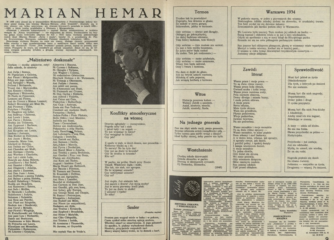 Archiwum / Poezja nr 2330 (23/1990) 38/48 Podziel się Tytuł Marian Hemar Kategoria Poezja Artykuł z numeru 2330 (2331/1990) Data wydania 18 lutego 1990 Tagi Marian Hemar