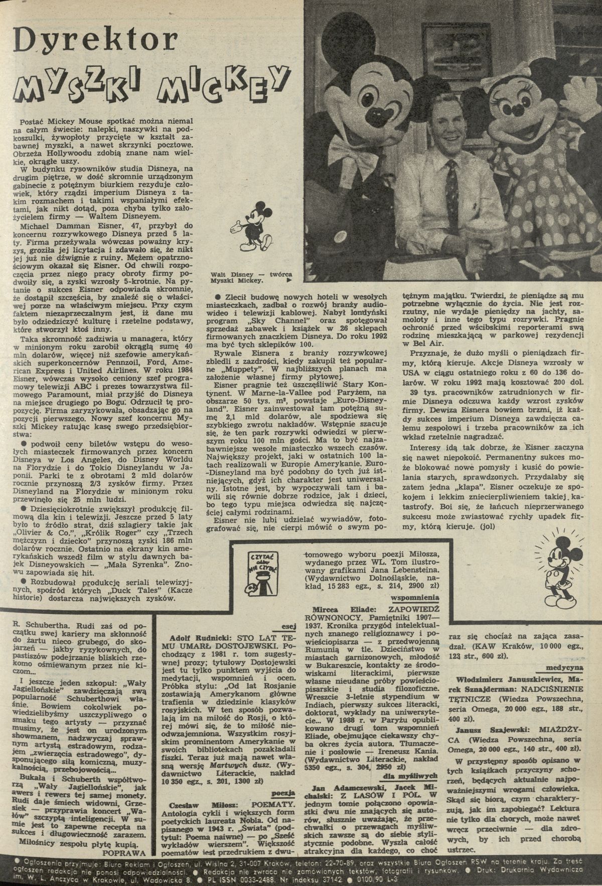 Archiwum / Artykuł nr 2330 (23/1990) 79/84 Podziel się Tytuł Dyrektor Myszki Mickey Kategoria Artykuł Artykuł z numeru 2330 (2331/1990) Data wydania 18 lutego 1990