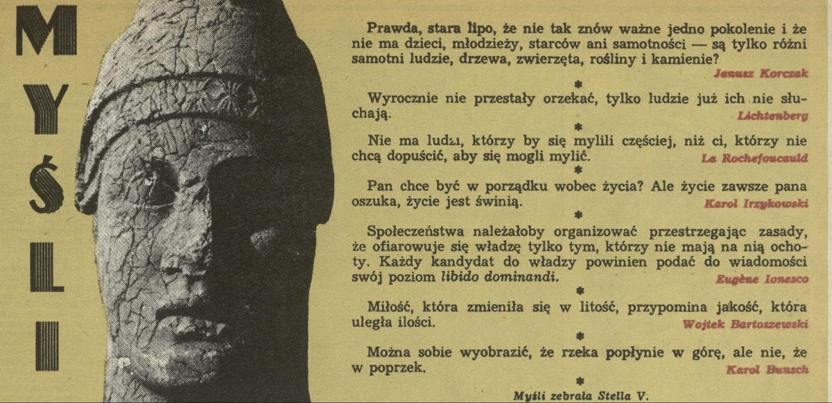 Archiwum / Myśli nr 2253 (33/1988) 92606/123969 Podziel się Tytuł Myśli Autor Stella Varcaby Rubryka Myśli Artykuł z numeru 2253 (33/1988) Data wydania 14 sierpnia 1988