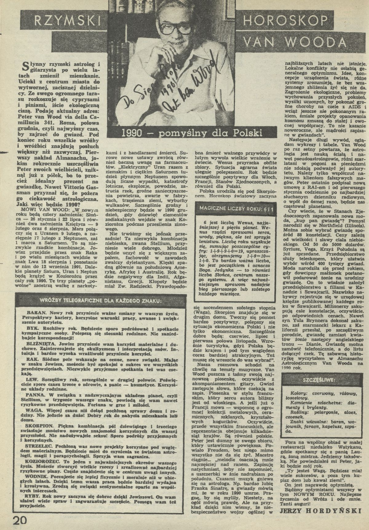 Archiwum / Rozrywka nr 2324 (23/1990) 74/164 Podziel się Tytuł Rzymski horoskop Autor Jerzy Hordyński Kategoria Rozrywka Artykuł z numeru 2324 (2325/1990) Data wydania 7 stycznia 1990 Tagi horoskop Van Wood