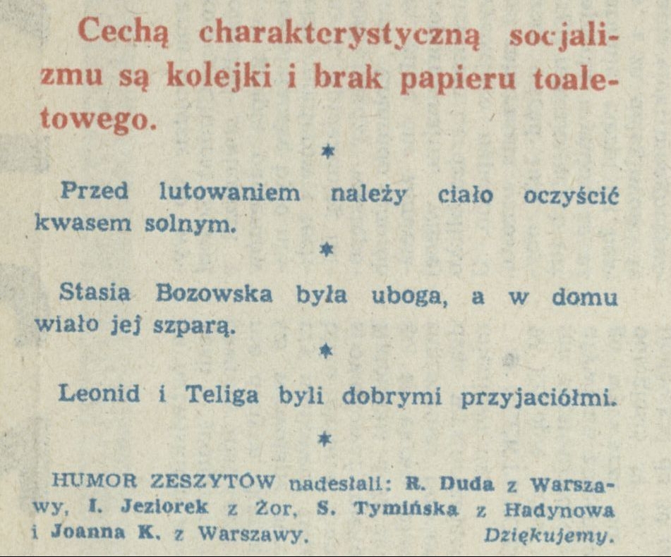Archiwum / Humor zeszytów szkolnych nr 2324 (23/1990) 01/38 Podziel się Tytuł Humor zeszytów Rubryka Humor zeszytów szkolnych Artykuł z numeru 2324 (2325/1990) Data wydania 7 stycznia 1990 Tagi humor zeszyt