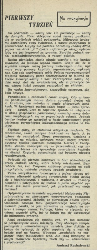 Archiwum / Relacja nr 2325 (23/1990) 95816/123969 Podziel się Tytuł Pierwszy tydzień Autor Andrzej Ruchałowski Kategoria Relacja Artykuł z numeru 2325 (2326/1990) Data wydania 14 stycznia 1990 Tagi pieniądz podwyżki
