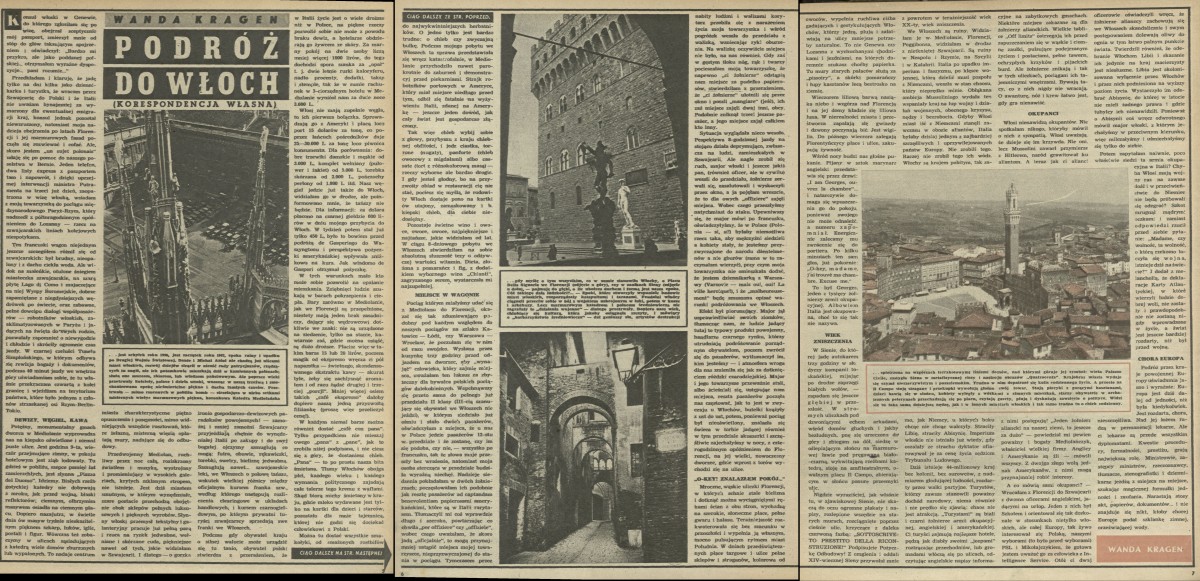 Archiwum / korespondencja własna "Przekroju" nr 97 (07/1947) 43/1699 Podziel się Tytuł Podróż do Włoch Autor Wanda Kragen Rubryka korespondencja własna "Przekroju" Artykuł z numeru 97 (7/1947) Data wydania 16 lutego 1947 Tagi Włochy przemyt Mediolan