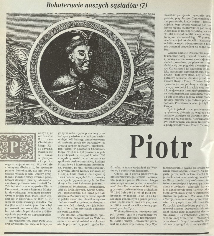 Archiwum / Społeczeństwo nr 2511 (32/1993) 77/247 Podziel się Tytuł Bohaterowie naszych sąsiadów: Piotr Doroszenko Autor A. Serczyk Kategoria Społeczeństwo Artykuł z numeru 2511 (32/1993) Data wydania 8 sierpnia 1993 Tagi Piotr Doroszenko ukraina historia Bohdan Chmielnicki Kozacy Dniepr