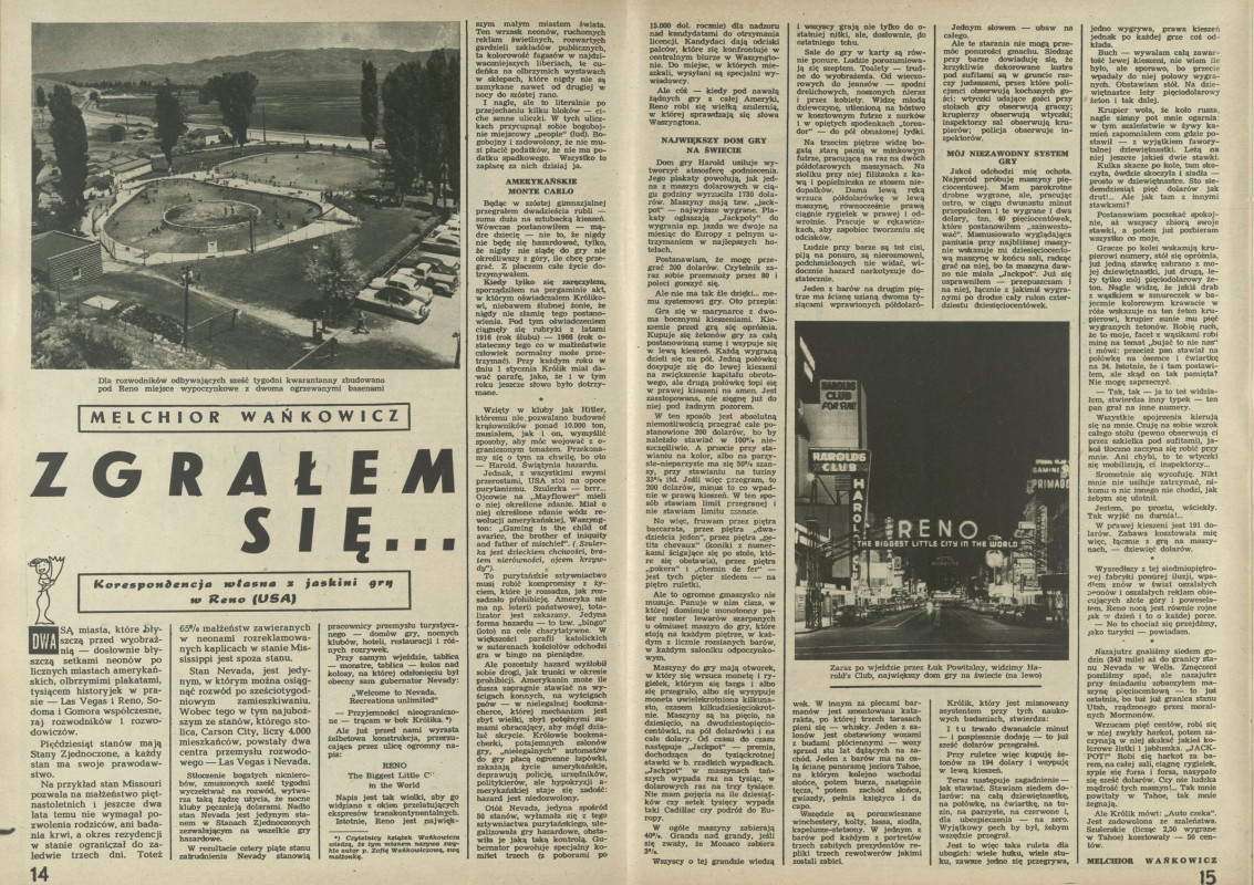 Archiwum / korespondencja własna "Przekroju" nr 849 (29/1961) 3/9 Podziel się Tytuł Zgrałem się Autor Melchior Wańkowicz Rubryka korespondencja własna "Przekroju" Artykuł z numeru 849 (29/1961) Data wydania 16 lipca 1961 Tagi USA rozwód hazard