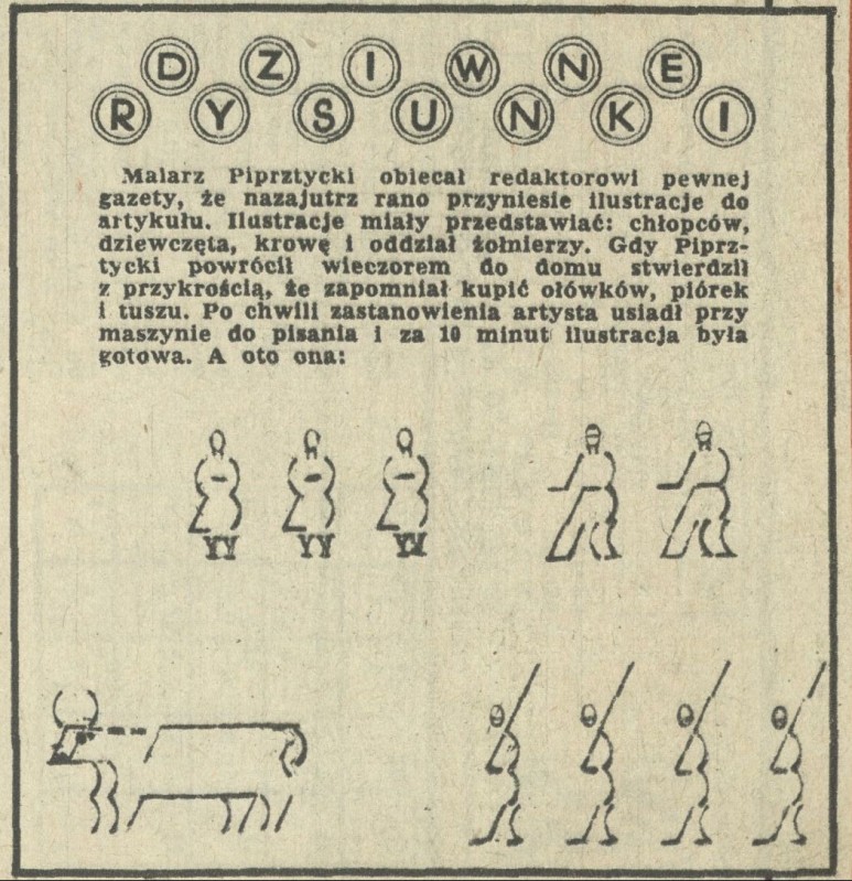Archiwum / Rozmaitości [old] nr 373 (22/1952) 12725/123969 Podziel się Tytuł Dziwne rysunki Rubryka Rozmaitości [old] Artykuł z numeru 373 (22/1952) Data wydania 1 czerwca 1952