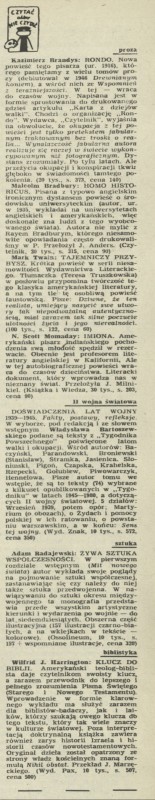 Archiwum / Czytać albo nie czytać? nr 1942 (28/1982) 826/4314 Podziel się Tytuł Czytać albo nie czytać? Rubryka Czytać albo nie czytać? Artykuł z numeru 1942 (28/1982) Data wydania 29 sierpnia 1982