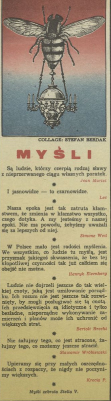 Archiwum / Myśli nr 2214 (46/1987) 16/18 Podziel się Tytuł Myśli Autor Stella Varcaby Stefan Berdak Rubryka Myśli Artykuł z numeru 2214 (46/1987) Data wydania 15 listopada 1987 Tagi cytaty myśli aforyzmy