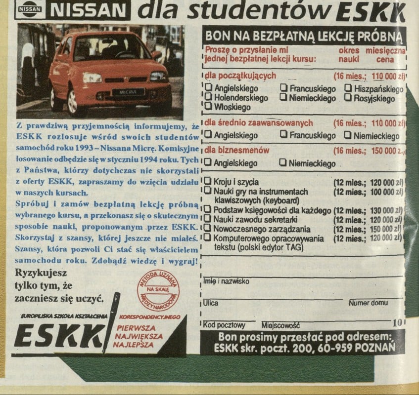 Archiwum / Reklamy nr 2514 (35/1993) 105054/123969 Podziel się Tytuł [Reklama] Rubryka Reklamy Artykuł z numeru 2514 (35/1993) Data wydania 29 sierpnia 1993 Tagi reklama ESKK Nissan