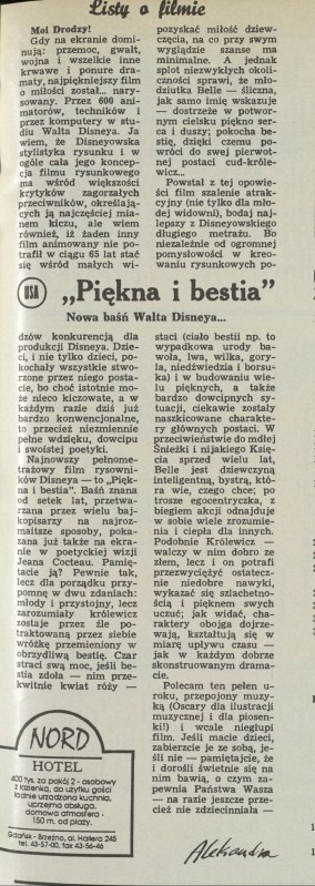 Archiwum / Listy o filmie nr 2514 (35/1993) 14/42 Podziel się Tytuł Listy o filmie Autor Aleksandra Rubryka Listy o filmie Artykuł z numeru 2514 (35/1993) Data wydania 29 sierpnia 1993 Tagi Piękna i bestia Walt Disney