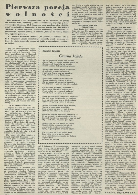 Archiwum / Reportaż nr 2326 (23/1990) 203/22319 Podziel się Tytuł Pierwsza porcja wolności Autor Teresa Bętkowska Kategoria Reportaż Artykuł z numeru 2326 (2327/1990) Data wydania 21 stycznia 1990 Tagi Stanisław Widłak "Pomoc dla wolnej Rumunii" Rumunia Rewolucja rumuńska