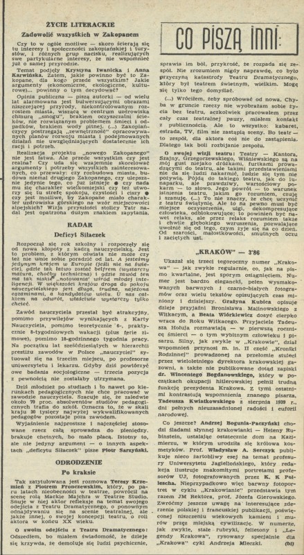 Archiwum / Co piszą inni nr 2153 (37/1986) 243/283 Podziel się Tytuł Co piszą inni Autor BL Rubryka Co piszą inni Artykuł z numeru 2153 (37/1986) Data wydania 14 września 1986 Tagi Życie literackie Radar