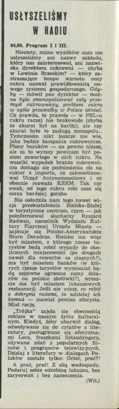 Archiwum / Artykuł nr 2464 (24/1992) 134/423 Podziel się Tytuł Usłyszeliśmy w radiu Autor Wit. Kategoria Artykuł Artykuł z numeru 2464 (2465/1992) Data wydania 13 września 1992 Tagi Polskie Radio ceny cukru cukrownie