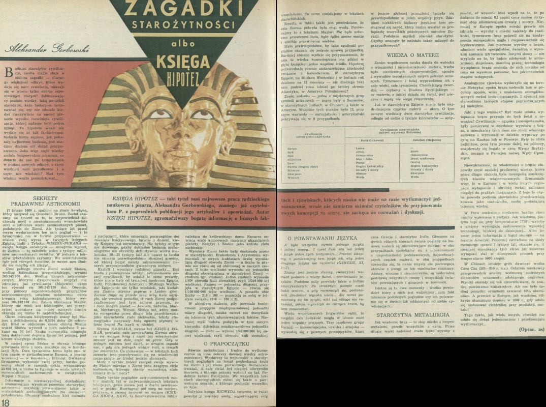Archiwum / Nauka nr 2157 (41/1986) 25/48 Podziel się Tytuł Zagadki Starożytności albo Księga hipotez Autor Aleksander Gorbowski Kategoria Nauka Artykuł z numeru 2157 (41/1986) Data wydania 12 października 1986 Tagi starożytne cywilizacje starożytność historia astronomia wszechświat astrologia materia filozofia metalurgia