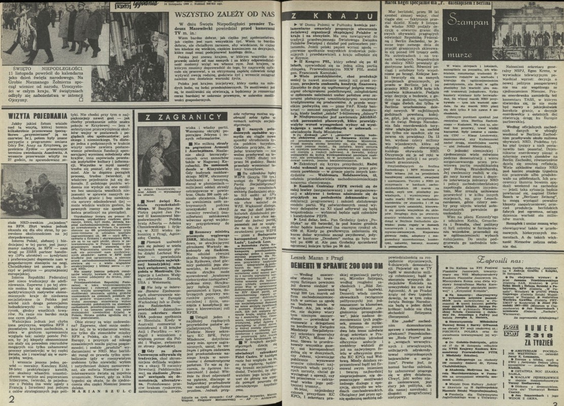 Archiwum / Przekrój tygodnia nr 2317 (45/1989) 11/276 Podziel się Tytuł Przekrój tygodnia Rubryka Przekrój tygodnia Artykuł z numeru 2317 (45/1989) Data wydania 19 listopada 1989
