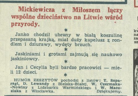 Archiwum / Humor zeszytów szkolnych nr 2394 (23/1991) 08/11 Podziel się Tytuł Humor zeszytów szkolnych Rubryka Humor zeszytów szkolnych Artykuł z numeru 2394 (2395/1991) Data wydania 12 maja 1991 Tagi szkoła dzieci humor
