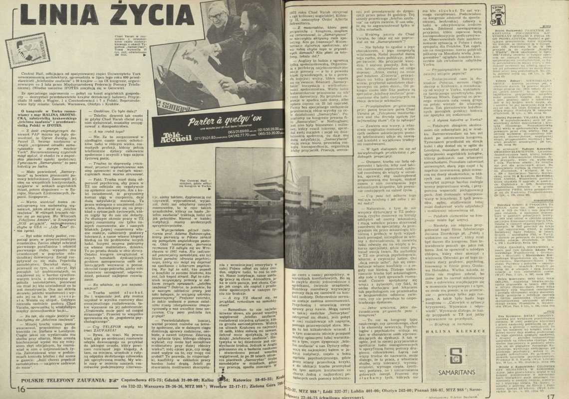 Archiwum / Rozmowy „Przekroju” nr 1943 (29/1982) 108/248 Podziel się Tytuł Linia życia Autor Halina Kleszcz Rubryka Rozmowy „Przekroju” Artykuł z numeru 1943 (29/1982) Data wydania 5 września 1982 Tagi telefon zaufania