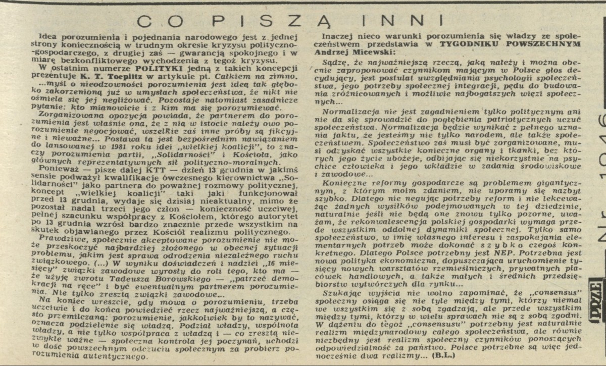 Archiwum / Co piszą inni nr 1945 (31/1982) 956/1160 Podziel się Tytuł Co piszą inni Autor bł Rubryka Co piszą inni Artykuł z numeru 1945 (31/1982) Data wydania 19 września 1982