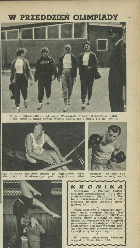 Archiwum / Sport nr 607 (48/1956) 23635/123969 Podziel się Tytuł W przeddzień Olimpiady Rubryka Sport Artykuł z numeru 607 (48/1956) Data wydania 25 listopada 1956 Tagi Wojasze Figwer Krzesińska Minnicka Kocerka Drogosz