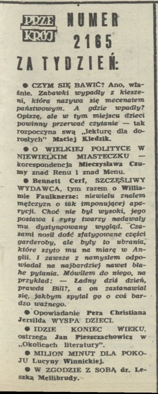 Archiwum / Różności nr 2164 (48/1986) 88801/123969 Podziel się Tytuł Za tydzień Kategoria Różności Artykuł z numeru 2164 (48/1986) Data wydania 30 listopada 1986 Tagi za tydzień