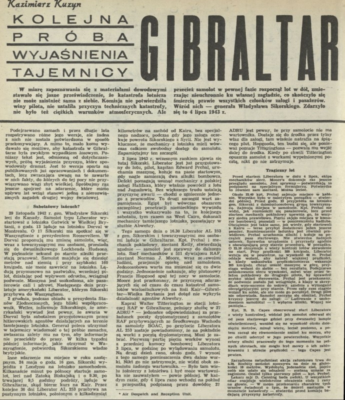 Archiwum / Reportaż nr 2164 (48/1986) 30/91 Podziel się Tytuł Gibraltar 1943 Autor Kazimierz Kuzyn Kategoria Reportaż Artykuł z numeru 2164 (48/1986) Data wydania 30 listopada 1986 Tagi Władysław Sikorski katastrofa gibraltarska Gibraltar