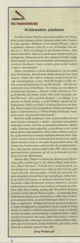 Archiwum nr 2771 (27/1998) 432/500 Podziel się Tytuł Królewskim szlakiem Autor Jerzy Piekarczyk Artykuł z numeru 2771 (2772/1998) Data wydania 2 sierpnia 1998 Tagi legenda lokale