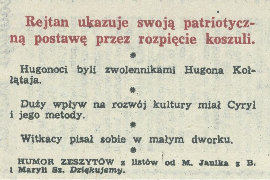 Archiwum / Humor zeszytów szkolnych nr 2166 (50/1986) 88929/123969 Podziel się Tytuł Humor zeszytów Rubryka Humor zeszytów szkolnych Artykuł z numeru 2166 (50/1986) Data wydania 14 grudnia 1986 Tagi humor zeszytów