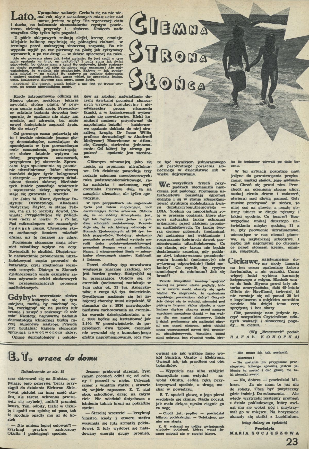 Archiwum / Artykuł nr 2145 (29/1986) 254/356 Podziel się Tytuł Ciemna strona słońca Autor Rafał Konopka Kategoria Artykuł Artykuł z numeru 2145 (29/1986) Data wydania 20 lipca 1986