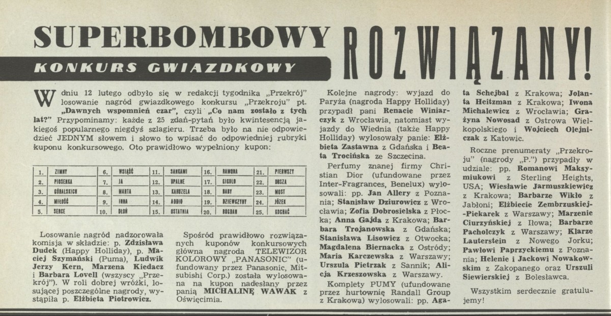 Archiwum / Konkurs nr 2435 (24/1992) 100916/123969 Podziel się Tytuł Superbombowy konkurs gwiazdkowy rozwiązany! Rubryka Konkurs Artykuł z numeru 2435 (2436/1992) Data wydania 23 lutego 1992