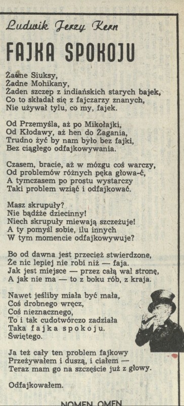 Archiwum / Poezja nr 2235 (15/1988) 37/51 Podziel się Tytuł Fajka spokoju Autor Ludwik Jerzy Kern Kategoria Poezja Artykuł z numeru 2235 (15/1988) Data wydania 10 kwietnia 1988