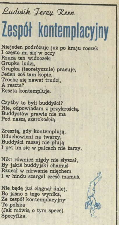 Archiwum / Rozmaitości nr 2232 (12/1988) 12/51 Podziel się Tytuł Zespół kontemplacyjny Autor Ludwik Jerzy Kern Rubryka Rozmaitości Artykuł z numeru 2232 (12/1988) Data wydania 20 marca 1988 Tagi wiersz kontemplacja