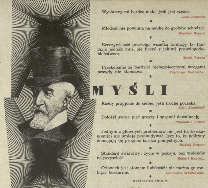 Archiwum / Myśli nr 1946 (32/1982) 28/41 Podziel się Tytuł Myśli Rubryka Myśli Artykuł z numeru 1946 (32/1982) Data wydania 26 września 1982 Tagi złote myśli