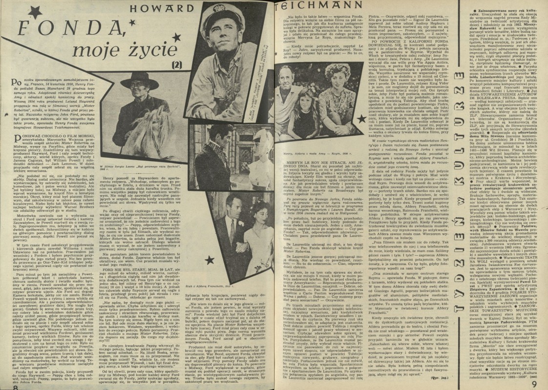 Archiwum / Artykuł nr 1947 (33/1982) 80046/123969 Podziel się Tytuł Fonda moje zycie Autor jog Kategoria Artykuł Artykuł z numeru 1947 (33/1982) Data wydania 3 października 1982 Tagi Fonda