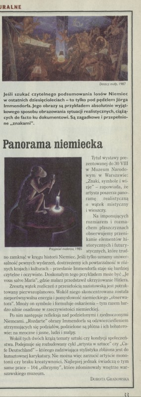 Archiwum nr 2771 (27/1998) 150/5592 Podziel się Tytuł Panorama niemiecka Autor Dorota Grabowska Artykuł z numeru 2771 (2772/1998) Data wydania 2 sierpnia 1998 Tagi wystawa