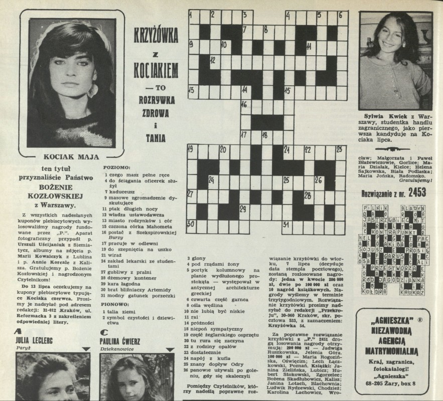 Archiwum / Krzyżówka z kociakiem nr 2454 (24/1992) 24/47 Podziel się Tytuł Krzyżówka z kociakiem Rubryka Krzyżówka z kociakiem Artykuł z numeru 2454 (2455/1992) Data wydania 5 lipca 1992