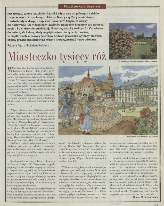 Archiwum nr 2771 (27/1998) 4/5 Podziel się Tytuł Miasteczko tysięcy róż Autor Bo Wer Artykuł z numeru 2771 (2772/1998) Data wydania 2 sierpnia 1998 Tagi Saverne
