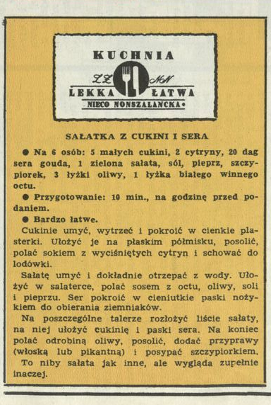 Archiwum / Rozmaitości nr 2454 (24/1992) 4/7 Podziel się Tytuł Kuchnia lekka, łatwa, nieco nonszalancka: Sałatka z cukinii i sera Rubryka Rozmaitości Artykuł z numeru 2454 (2455/1992) Data wydania 5 lipca 1992 Tagi kuchnia przepis kulinarny gastronomia