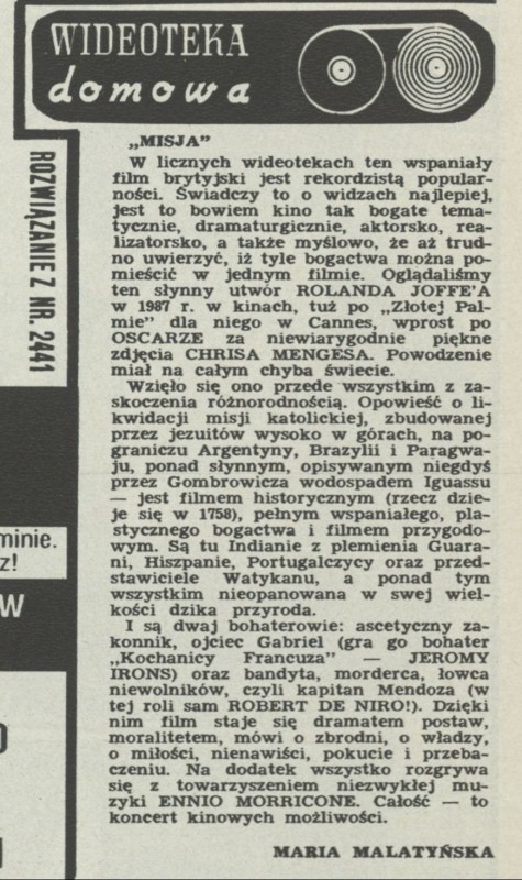 Archiwum / Recenzja nr 2442 (24/1992) 35/55 Podziel się Tytuł Wideoteka domowa Autor Maria Malatyńska Kategoria Recenzja Artykuł z numeru 2442 (2443/1992) Data wydania 12 kwietnia 1992